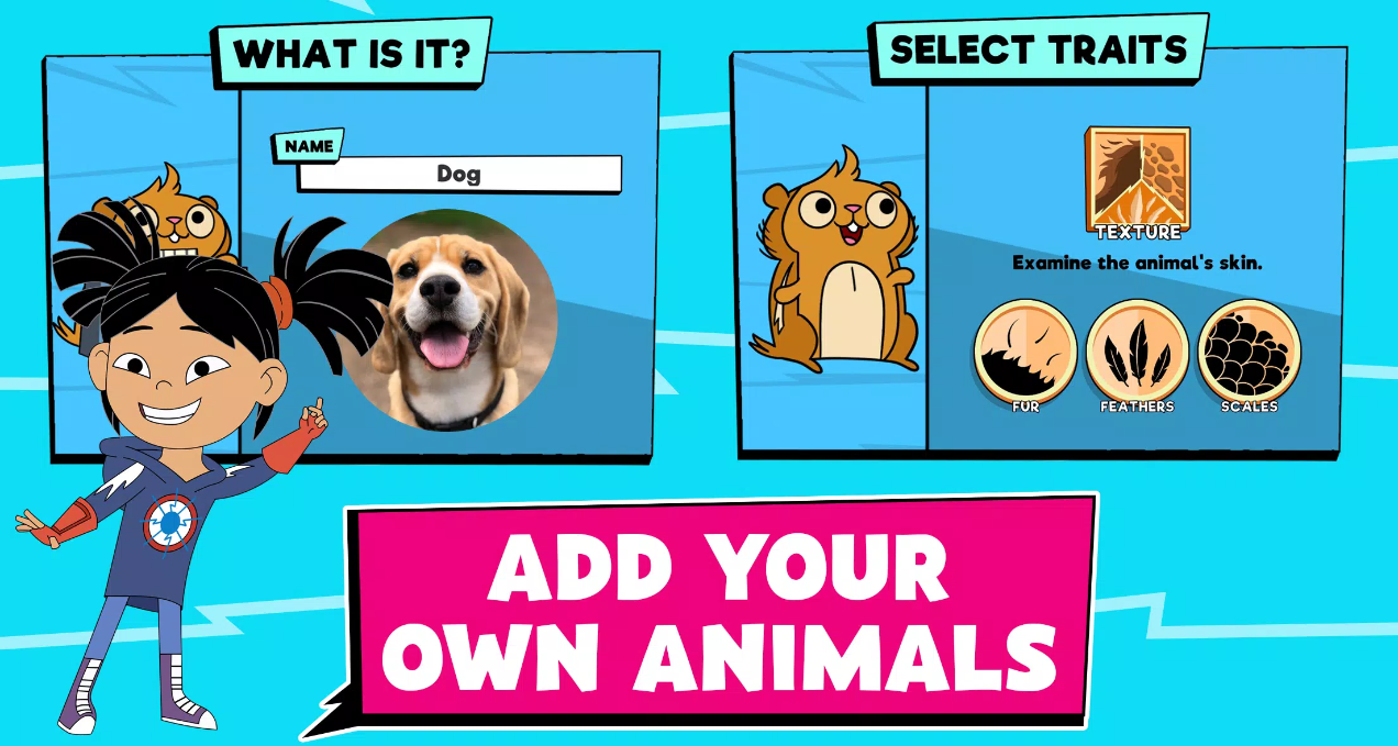 Players would often use the Make feature to add their pet, imaginary animals, and even their younger siblings to the game. Which we encouraged! While none of these additions would usually be added to this kind of list, players were still using the same classification skills and often had thought out reasoning when asked why each trait was added. Adding an animal that didn’t quite fit was causing them to adjust their mental model of what each trait was and how it could present in the world around them. This also had the added benefit of increasing our average play time. Players would create a new animal and be so excited at the possibility of seeing it in the game that they’d go back to the Play section after using the Make section.